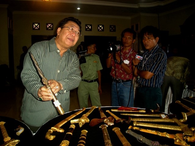 SUMATRALINK.ID, LAMPUNG — Kalau sudah hobi, apapun bisa dicapai. Inilah yang menjadi tekad seorang yang mengalir darah seni Andy Achmad Sampurnajaya, putra asli Lampung. Artis lawas tahun 1970-an ini, hingga kini tak pernah lekang mengapresiasi seni budaya bumi persada tercinta ini. Bagi kalangan pencinta musik, ketenaran Andy di panggung tarik suara, sudah tidak disangkal lagi. Ia mengawali karir dengan “menjual” suara syahdunya. Berbagai lomba tarik suara, pada masa jayanya, baik di tingkat lokal maupun nasional, pernah disabetnya. Ternyata, kecintaannya pada musik dan pencipta lagu, tak meninggalkan hobi yang masih bertalian dengan seni lainnya. Siapa yang menyangka, kalau Andy, yang mantan bupati Lampung Tengah selama dua periode ini, memiliki hobi yang tidak semua bisa dilakoni orang. Senjata keris, sebagai warisan leluhur bangsa Indonesia, menjadi daya tarik Andy mengoleksi. Bagi bapak empat anak ini, keris tidak saja sebagai senjata untuk berperang pada perlawanan menghunus penjajah, tetapi sekaligus bernilai dan bermakna seni yang tinggi. “Bayangkan, keris ini sebagai benda pusaka, berlapis emas lagi, dengan motif dan teksturnya yang rumit, membuat kita kagum atas buah karya leluhur kita,” kata Andy Achmad sambil memperlihatkan keris berbalut emas dengan motif bernilai artisitik di Gunungsugih, Lampung Tengah, Lampung, beberapa waktu lalu. Dari kekaguman seni budaya bangsa ini, perburuannya mencari beragam keris pusaka berlapis emas dan gading tersebut, sudah dilakoninya sejak tahun 1970. Awalnya, tutur suami Sriyanti, ia memiliki hanya dua keris berlapis emas, warisan leluhur keluarganya 36 tahun silam. Dua keris leluhurnya ini, menjadi perhatian ektra baginya. Pasalnya, benda pusaka itu diciptakan pada abad ke-17. Riwayatnya sungguh fantastik. Cerita Andy, keris ini pernah dipegang oleh karesidenan van Lampung, zaman Belanda. “Melihat kronologisnya, saya sangat bersyukur bisa mendapatkan dua keris tersebut,” Andy mengenang. Ketertarikan terhadap seni kerajinan keris tradisional nusantara, ini satu demi satu ia kumpulkan. Tak jarang, dirinya memburu keris pusaka hingga ke pelosok nusantara. Berhari-hari dan bermalam-malam berada di pelosok Sulawesi Selatan, sudah menjadi santapan rohaninya. Ia bergerilya ke daerah-daerah pedalaman di Indonesia, mulai dari tanah kelahirannya Lampung, Palembang, Jakarta, Solo, Yogyakarta, Surabaya hingga Kalimantan dan Sulawesi. “Saya berhenti berburu, setelah terpilih menjadi bupati,” ujar Andy Achmad, pencipta sejumlah lagu khas berbahasa Lampung. Salah satu koleksinya, senjata asli Lampung yang sudah langkah dan punah, yakni Taji Ayam. Senjata ini berbentuk setengah lingkaran, menyerupai taji yang dipasang di kaki ayam aduan. Ia juga menyimpan senjata pusaka peninggalan kakeknya, menyerupai rencong. Orang Lampung menyebutnya Badik Lampung Palembang Capit. Koleksi keris tak pernah dilupakan. Atas kekuasaan Allah SWT, ia terlepas dari niat buruk penjahat yang akan merampok rumahnya pada tahun 1983. “Atas pertolongan Allah, saya berhasil melumpuhkan dua perampok di dalam rumah saya, meski saya berlumur darah,” kenang Kanjeng, sapaan Andy. Andy mengatakan, keindahan bentuk dan rupa keris, jangan hanya semata-mata melihat dari unsur magis. Tetapi, ia katakan cobalah melihat bentuk pamor dan karya artistiknya. “Saya hanya melihat betapa dahsyatnya, karya leluhur kita zaman dulu, yang merangkaui keris dengan emas berarsitektur indah penuh sejarah,” katanya. Motivasinya mengkoleksi keris pusaka warisan leluhur bangsa, tidak lain untuk mengapresiasi buah tangan bangsa sendiri. Selain itu, ia menekankan agar senjata keris yang dipakai bangsa ini dalam perjuangan tidak jatuh ke tangan kolektor asing. “Kalau semua jenis keris pusaka dijual kepada orang asing. Lalu, bagaimana anak cucu bangsa ini, dapat tahu bahwa leluhurnya berjuang menggunakan keris melawan penjajah,” ujar Andy yang berniat membangun musium pribadi senjata pusaka dan barang bernilai sejarah lainnya. Kini, Andy Achmad telah mengoleksi 99 keris berangka emas dan 103 keris berangka gading. Atas perburuannya tersebut, Andy dinobatkan Musium Rekor Indonesia sebagai kolektor keris terbanyak. Menurut Sri Widiayati, Andy berhasil mengalahkan pesaing lainnya, yang hanya mengkoleksi 20 keris saja. Penghargaan MURI kepada Andy selaku kolektor keris berlapis emas dan gading ini, kata dia, telah dilakukan selama sebulan. “Ini baru pertama di Indonesia kolektor keris berangka emas dan gading,” kata Sri, staf Muri, kepada Republika seusai penyerahan dua piagam MURI bernomor 2299/R.MURI/I/2007 (99 buah keris emas) dan Nomor 2300/R.MURI/I/2007 (103 buah keris gading). (Mursalin Yasland/disadur dari koran Republika) Facebook WhatsApp Twitter Threads Navigasi pos Rasulullah SAW Pernah Lapar Berat, Apa yang Terjadi? Tangisan Umar Melihat Isi Rumah Khalifah Abu Ubaidah