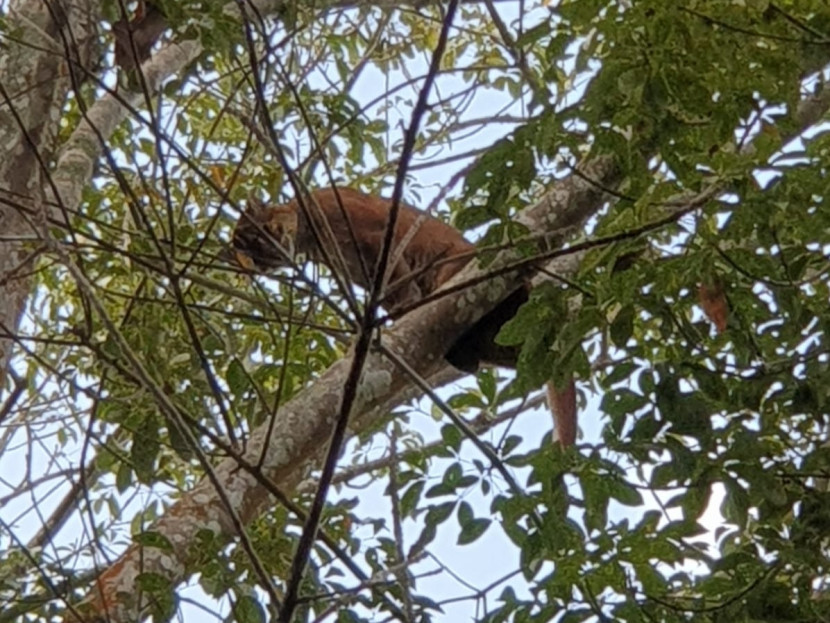 Seekor harimau bertengger di dahan pohon karet milik PTPN VII Lampung. (Foto: SumatraLink.id/PTPN VII) SumatraLink.id, Lampung – Seekor harimau masuk area perkebunan milik PT Perkebunan Nusantara (PTPN) VII kawasan Regional 7 Afdeling 3 Taman 92 Desa Sukaraja, Kecamatan Gedong Tataan, Kabupaten Pesawaran, Lampung, Kamis (13/6/2024) pukul 10.00. Kehadiran binatang buas ini membuat pekerja kebun menghentikan aktivitas sebelum harimau tersebut ditangkap. Keterangan yang diperoleh dari karyawan PTPN VII Lampung, Kamis (13/6/2024), harimau tersebut masuk kawasan kebun karet milik PTPN VII dan kerap bertengger di dahan pohon karet. Harimau tersebut terlihat jelas oleh pekerja, yang membuat para pekerja ketakutan untuk melanjutkan aktivitas di perkebunan karet. Menurut Andi, karyawan bagian Humas PTPN VII, kehadiran harimau teresbut diketahui pekerja yang sedang beraktivitas. “Harimau masuk arela PTPN Regional 7 unit Way Berulu,” kata Andi dalam keterangannya, Kamis (13/6/2024). Pihak Balai Konservasi Sumber Daya Alam (BKSDA) Bengkulu – Lampung yang juga konsentrasi dalam penanganan satwa dilindungi tersebut, belum terlihat di lapangan. Diperkirakan, petugas BKSDA baru akan mendeteksi keberadaan harimau tersebut pada Jumat (14/6/2024). Pekerja perkebuan karet PTPN VII belum mengetahui asal harimau yang tiba-tiba berada di dahan pohon karet. Diperkirakan, harimau tersebut berasal dari hutan Taman Nasional Bukit Barisan Selatan atau TNBBS wilayah Lampung. Belum ada keterangan resmi dari BKSDA Regional Lampung. Selama ini, satwa liar tidak pernah ada di kawasan perkebunan karet. Adanya harimau, selain membuat pekerja kebun takut dan khawatir dengan keselamatan jiwa, juga berdampak pada warga sekitar kebun karet. (Emye) Editor: Mursalin Yasland Facebook WhatsApp Twitter Threads Navigasi pos PLN Klaim Listrik di Lampung Menyala 100 Persen pada Kamis Jokowi: Pompanisasi Solusi Antisipasi Kekeringan Panjang