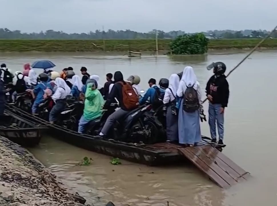 SUMATRALINK.ID, LAMPUNG – Tiada jembatan penghubung, sejumlah anak sekolah pejalan kaki dan bermotor terpaksa menyeberang Sungai Batanghari menggunakan perahu setiap hari. Kondisi di Desa Kali Pasir, Kecamatan Way Bungur, Sukadana, Kabupaten Lampung Timur, Lampung, sudah berlangsung bertahun-tahun, pemerintah daerah setempat belum juga membangun jembatan permanen. Dalam tayangan video warganet yang berprofesi seorang pendidik, warga setempat, pada Senin (2/2/2026), antrean panjang anak sekolah SMA baik pejalan kaki maupun yang berkendara motor sedang menunggu kedatangan perahu untuk menyeberangi sungai dari desanya. Narasi yang disampaikan pada akun FB @Andre Angler Liar, antrean anak sekolah SMA masih harus menerima kenyataan untuk menyeberang sungai menggunakan perahu kayu setiap hari. “Ini perjuangan anak-anak didik saya, generasi bangsa Indonesia, anak-anak Desa Kali Pasir, Kecamatan Way Bungur, Sukadana, Lampung Timur, yang berjuang seperti ini, lihatlah perjuangan mereka,” kata Andre AL, Senin (2/2/2026). Seperti ini sampai pemerintah menutup mata, menutup telinga dari apa yang kami rasakan riil nyata, ini bukan film. – Warga Kali Pasir Ia mengatakan, kondisi penyeberangan anak-anak sekolah menggunakan perahu tersebut berlangsung setiap hari dengan beberapa kali gelombang. “Seperti ini sampai pemerintah menutup mata, menutup telinga dari apa yang kami rasakan real nyata, ini bukan film,” ujarnya. Menurut dia, selain menggunakan perahu untuk menyeberangi sungai, dapat melalui jalur alternatif lain, namun harus memutar dan menempuh jarak yang sangat jauh melewati ladang-ladang warga. Pada akun FB @Abdul Rohman sebelumnya menyebutkan, Desa Kali Pasir berdiri sejak tahun 1960, namun hingga saat ini belum juga dibangun jembatan penyeberangan bagi akses warga dan anak-anak sekolah untuk keluar dan masuk desa. Warga dan anak sekolah harus menyeberangi sungai setiap hari dengan jarak tempuh hampir satu kilometer. Viralnya tayangan video di media sosial terkait dengan anak-anak sekolah menyeberangi sungai menggunakan perahu, Bupati Lampung Timur Ela Siti Nuryamah mulai bergerak turun ke lokasi, Senin (1/2/2026). Menurut Bupati Ela Siti Nuryamah, rencana pembangunan jembatan di lokasi tersebut sudah lama diupayakan, namun keterbatasan kemampuan keuangan daerah membuat pemkab belum dapat membangunnya secara mandiri. Pemkab Lampung Timur telah mengusulkan pembangunan jembatan permanen kepada pemerintah pusat melalui Kementerian Pekerjaan Umum yang masuk skema bantuan presiden. Hingga saat ini, usulan tersebut belum terealisasi karena keterbatasan anggaran. Biaya pembangunan jembatan permanen sepanjang 100 meter diperkirakan menelan biaya Rp 70 miliar, sedangkan Pemkab Lampung Timur baru mampu mengalokasikan anggaran sebesar Rp 18,99 miliar. Pemkab Lampung Timur dan Pemprov Lampung bersama Balai Besar Pelaksanaan Jalan Nasional atau BPJN segera membangun Jembatan Merah Putih yang akan selesai pada semester pertama 2026. Tim pelaksana sudah turun ke lokasi dan mengukur secara teknis tahap awal. (Emye) Editor: Mursalin Yasland Facebook WhatsApp Twitter Threads Navigasi pos Dewan Perdamaian Dibentuk, Justru Israel Bombardir Gaza, 32 Orang Meninggal Dunia Restorative Justice Terintegrasi Hasilkan Keadilan Humanis