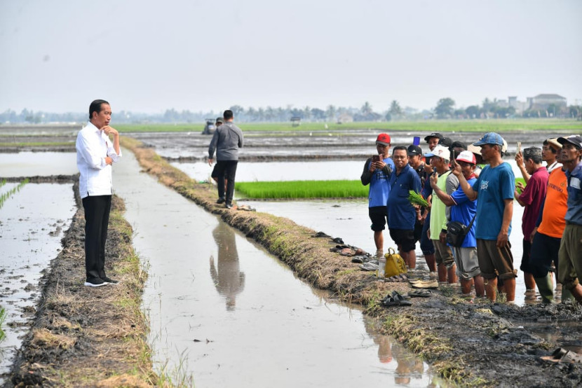 Presiden Jokowi tinjau lahan sawah Kecamatan Palas, Kabupaten Lampung Selatan, Lampung, Kamis (11/7/2024). (Foto: SumatraLink.id/Humas Kementan) SumatraLink.id (REPUBLIKA NETWORK), Lampung — Presiden Joko Widodo (Jokowi) mengingatkan saat ini banyak negara dilanda kekeringan panjang. Akibatnya produksi pertanian mengalami penurunan. Ia menilai program pompanisasi yang dijalankan Kementerian Pertanian (Kementan) solusi tepat yang dapat dipasang di seluruh Indonesia. "Kita harus siap dulu sehingga produktivitas petani, produksi beras kita tidak turun," ujar Presiden Jokowi saat meninjau pompanisasi Kementan di Desa Bandan Hurip, Kecamatan Palas, Kabupaten Lampung Selatan, Lampung, Kamis (11/7/2024). Presiden memuji sistem irigasi dan saluran air sekunder maupun tersier persawahan di Provinsi Lampung dalam kondisi baik sehingga memungkinan para petani untuk bertanam lebih dari satu kali. Presiden berharap Lampung terus menjadi salah satu penyangga utama bagi ketersediaan pangan Indonesia. "Saya lihat di sini (Lampung) irigasinya baik, ini kita tarik airnya dari irigasi yang lebih rendah untuk masuk ke irigasi sekunder, tersier, bisa lari ke sawah sehingga kita harapkan yang biasanya tanam panen sekali bisa dua kali, yang sudah dua kali bisa tiga kali," katanya. Sebagai informasi, sebaran pompa di Provinsi Lampung dari tahun 2019 hingga 2024 mencapai 2.606 unit. Sementara untuk Kabupaten Lampung Selatan dialokasikan 150 unit pompa di tahun 2024. Adapun luas baku sawah di sana mencapai 38.688 hektare dengan potensi sawah tadah hujan mencapai 30.976 hektare (ha). Menteri Pertanian (Mentan) Andi Amran Sulaiman mengatakan, penambahan pompa untuk Lampung Selatan mencapai 150 unit dan diharapkan mampu menjangkau 1.650 ha dengan rata-rata provitas mencapai 5 ton per ha. "Dengan bantuan ini diharapkan potensi produksinya mencapai 16.500 ton GKG dengan IP 300 atau terjadi peningkatan 5.6 persen dari tahun sebelumnya," kata Amran, saat mendampingi presiden. Pada Tahun 2023, luas panen padi di Provinsi Lampung mencapai 530,11 ribu hea dengan produksi padi sebesar 2,76 juta ton Gabah Kering Giling (GKG) dan menjadi produsen beras terbesar ke-6 di Indonesia. (Rilis Humas Kementan) Editor: Mursalin Yasland Facebook WhatsApp Twitter Threads Navigasi pos Harimau Bertengger di Kebun Karet Milik PTPN VII Nasib Perkantoran Mewah Pemprov Lampung di Kota Baru