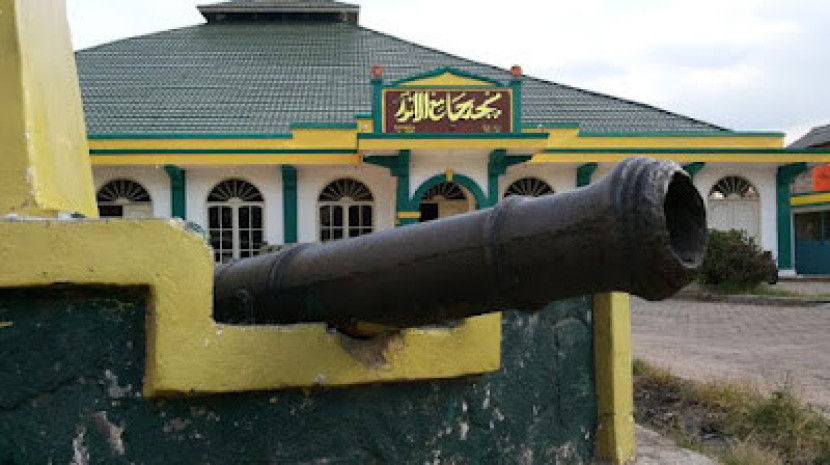 Meriam tua, peninggalan di Masjid Jami Al Anwar di Telukbetung, Bandar Lampung. (Foto: Mursalin Yasland)