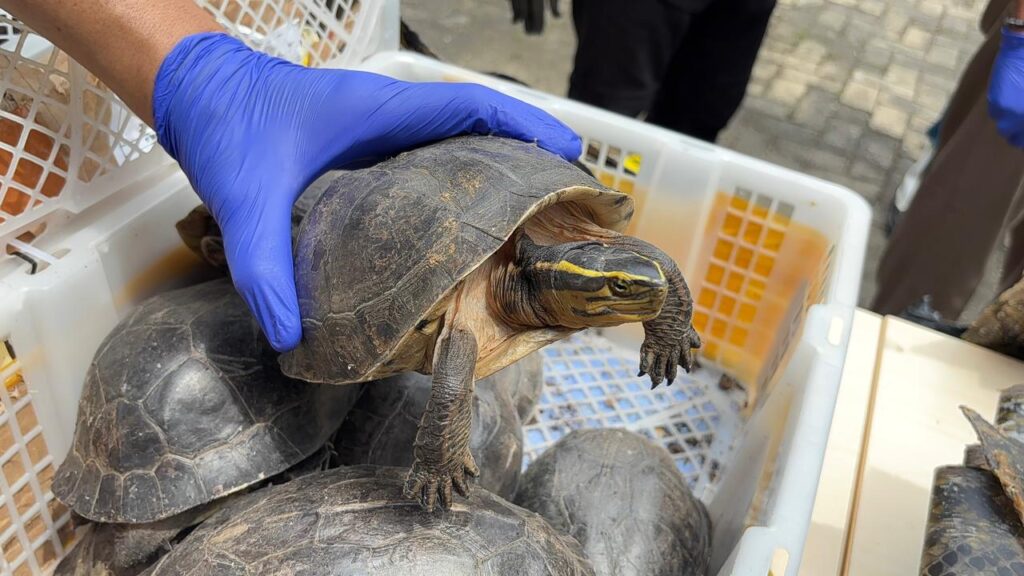 SUMATRALINK.ID, LAMPUNG – Sebanyak 445 lembar kulit ular piton dan 32 individu kura-kura dari Riau tujuan Pulau Jawa dan Bali gagal diselundupkan di Pelabuhan Bakauheni Lampung, Rabu (28/1/2026) malam. Selain kulit ular dan kura-kura terdapat juga ikan cupang dan biawak yang diangkut truk boks ekspedisi tanpa dokumen resmi. Berdasarkan temuan awal, Karantina Lampung bersama pihak terkait melakukan pemeriksaan mobil truk boks ekspedisi di Pelabuhan Bakauheni. Petugas berhasil mengamankan 445 lembar kulit ular, 32 ekor kura-kura hidup, 3 ekor ikan cupang, dan 1 ekor biawak. Penggagalan penyelundupan ini kerja sinergi pengawasan Balai Karantina Hewan, Ikan, dan Tumbuhan (Karantina) Lampung bersama Pangkalan TNI Angkatan Laut (Lanal) Lampung dan Polres Lampung Selatan. Personel Lanal Lampung mendapati kendaraan ekspedisi yang membawa satwa dan bagian tubuh satwa tanpa dokumen karantina. Kepala Karantina Lampung Donni Muksydayan mengapresiasi aparat TNI dan polisi yang bersinergi dalam pengawasan karantina yang berhasil menggagalkan upaya penyelundupan tersebut. Menurut dia, peredaran satwa dan produk asal hewan tanpa melalui tindakan karantina pelanggaran serius. “Kami yang memiliki otoritas sangat terbantu dengan sinergi dan kerja sama ini,” ujar Donni Muksydayan dalam keterangan persnya di Bandar Lampung, Kamis (29/1/2026). Ia mengatakan, media pembawa yang tidak melalui pemeriksaan karantina berpotensi menjadi sumber penyebaran penyakit hewan, dan mengancam kesehatan masyarakat serta berdampak pada kelestarian sumber daya genetik Indonesia. Kami yang memiliki otoritas sangat terbantu dengan sinergi dan kerja sama ini. – Donni Muksydayan Seluruh barang hasil penindakan personel Lanal Lampung diserahkan kepada Karantina Lampung untuk dilakukan pemeriksaan dan identifikasi lebih lanjut sesuai kewenangan. “Kami menyerahkan semua barang bukti ini kepada Karantina (Lampung),” kata Mayor Laut Firman Fitriadi, perwira TNI AL Lampung. Penyelundupan kura-kura dan kulit ular piton. (Foto: Dok. BKP Lampung) Berdasarkan keterangan sopir, barang kiriman tersebut berasal dari Provinsi Riau dan rencananya dikirim ke wilayah Tangerang, Surabaya, dan Bali. Saat ini, Karantina Lampung melakukan identifikasi untuk memastikan jenis satwa dan status konservasinya, penanganan karantina yang tepat, dan penelusuran pihak pengirim berkordinasi dengan Balai Konservasi Sumber Daya Alam Lampung. Kepada masyarakat, Karantina mengimbau tidak melakukan pengiriman, perdagangan, maupun pemeliharaan satwa secara ilegal. Selain itu, berperan aktif melaporkan dugaan pelanggaran perkarantinaan. Kepatuhan terhadap ketentuan karantina bagian penting dalam perlindungan kesehatan masyarakat, hewan, dan kelestarian lingkungan. (Emye) Editor: Mursalin Yasland Facebook WhatsApp Twitter Threads Navigasi pos Chiki, Anak Ikang Fauzi-Marissa Haque Dicopot dari Petugas Haji 2026